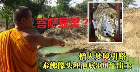 (曼穀17日綜合電)菩薩顯靈?泰國素攀府一間寺廟, 日前有一個相信已有300年历史的佛像頭出土。這佛像之所以被人發現,竟是因一名僧人多次夢到它。