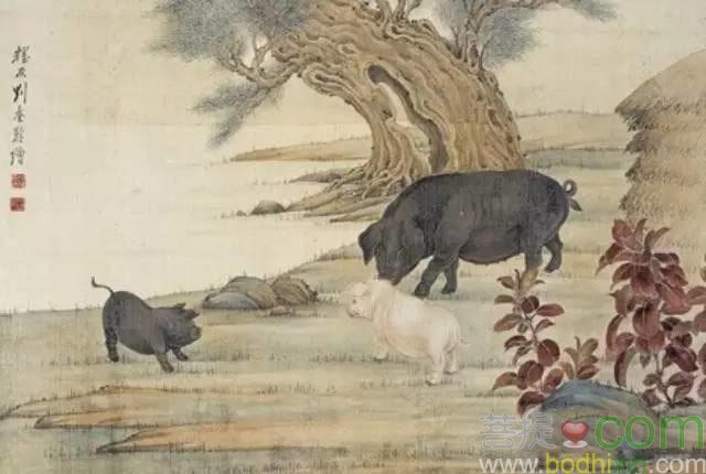 南宋時期,金朝洛陽西邊永寧的一處屠肆,養了幾十頭豬。有一天,屠夫家的子弟問宰殺哪一頭豬?屠夫爬上豬圈的欄桿用手指點,群豬都驚慌四竄,只有一頭豬安然不動。屠夫指著這頭豬說:「它吃得很少,也養了很久,可先宰殺它。」