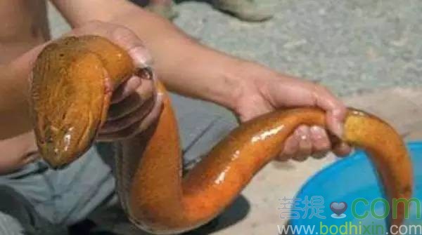 旁邊拿著念佛機的師兄隨後補充說這大黃鱔的來历。原來她和其他幾個不同家庭的居士都同時在晚上做了個相同的夢,夢裡兩條很大的長著三角頭的大鱔向她們求救命,顏色一黃一灰,求她們幫助解救生命。其中有位居士在那晚做了三次這個夢,幾個人偶然一碰頭聊天時發現她們做的夢既然是相同的,覺得太不可思議了,於是就去市場找這兩條黃鱔,找著找著,還真讓她們給找到了,因為她們夢中的大鱔與平常的鱔不同,它們很粗,而且頭很大,更奇怪的是三角頭,膚色和她們夢中一糢一樣,一黃一灰,當她們找到的時候,感覺太不可思議了,趕緊買下來,另外她們還買下一桶泥鰍,開車提前趕到湘江邊等我們一起放生,也給我們放生組的同修們看看這兩條神奇的托夢救命的大鱔,這就是這桶中托夢救命大鱔的來历。