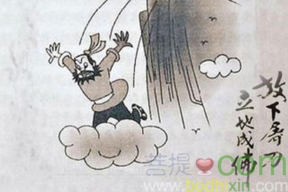 沙彌回答道:「我踏死了一只青蛙,師父要我跳崖懺悔謝罪!」