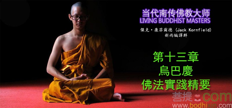 烏巴慶(U Ba Khin 1899~1971)是位在家禪修大師,是我們這個時代最特殊人物之一。他約在四十歲仍任公職時,開始學禪修。他在著名的緬甸在家宗師帖特(Saya Thet Gyi 1873~1945。譯按:他曾在雷 迪法師〔Ledi Say^adaw〕座下修學七年)的指導下,廣泛學習,精熟多種專註禪修,並發明一種最有效的 技巧,來修毗婆舍那的內觀禪修。這方法系洞察色法和心法,集中註意感受浮現的變化。