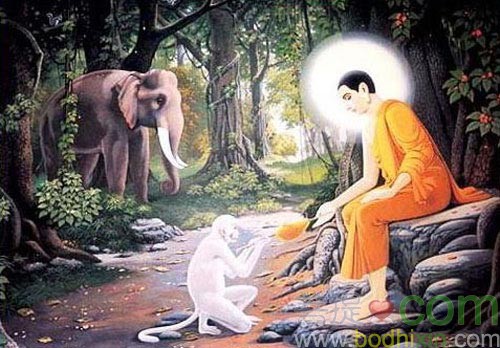 常悲菩薩不願看到這一切,便拋下妻子兒女,一個人到山中隱居修行。他每大喝山泉水,吃樹上的野果,過著苦行的日子。