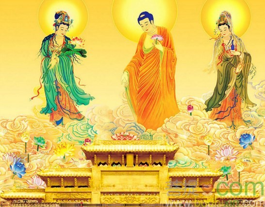 「公據何人問大蘇」,「大蘇」就是指蘇東坡——蘇軾,唐宋八大家之一,很有文才,對佛理也非常了解。他主要是在禪宗很有造詣,然而他與淨土宗也有甚深的因緣。他的母親去世之後,他把他母親遺留下來的那些金銀首飾變賣——就做功德,同時畫了一張阿彌陀佛的畫像。蘇東坡在政場上宦海沉浮。由於他心直口快,率性天真,寫的詩文可能也得罪了一些大官,所以常常被貶官。他被貶官以後南行,隨身帶的就是這張阿彌陀佛的畫像。有人問:「你怎麽帶一幅佛像啊?」蘇東坡回答:「這是我往生西方的公據。」說明他也有淨土的信仰。