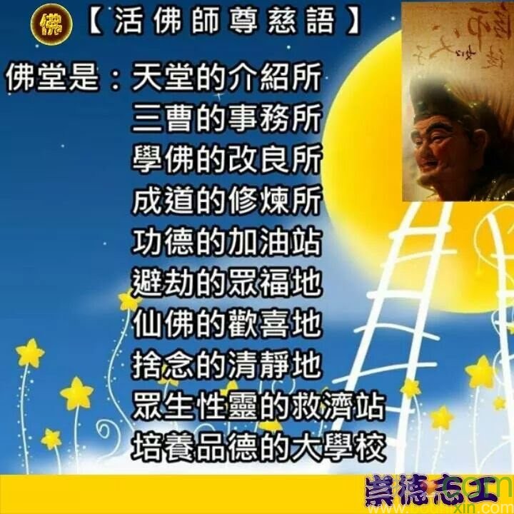 每天叩首禮佛,能夠常常迴光返照,低心下氣,又可以消罪業。想想自己六萬年來造了多少的罪業,欠了人家那麼多,現在要行功立德了,當然也要請仙佛慈悲保佑一下,再用懺悔的心讓冤家債主慢一點來討。另一方面,在家裡有佛規禮節的約束,家人之間會更幸福美滿,夫妻相敬如賓,孩子也是用道來教導,而且天天在家就可以看到佛堂,就會想到自己應該要好好地圓滿一切,這就是開設佛堂的好處。