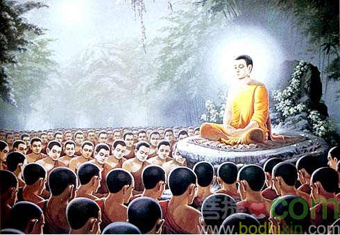 此時,佛陀在寺廟的一個地方坐下,眾比丘聚集到他的周圍,聆聽佛法。有些比丘來到他跟前,以期獲得適合自己的禪坐方法;另外一些比丘來向佛陀行禮後,就回到自己的房間。