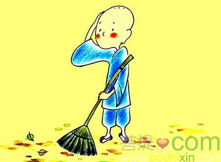 有個小和尚,每天早上負責清掃寺廟院子裡的落葉。