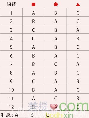 每個問題選出你的答案,按照下面的表格,將A、B、C的數量累加。數量最多的字母就是你的「評判者」類型。