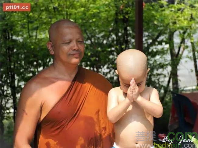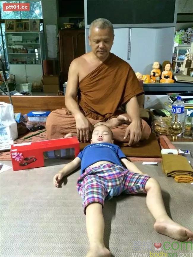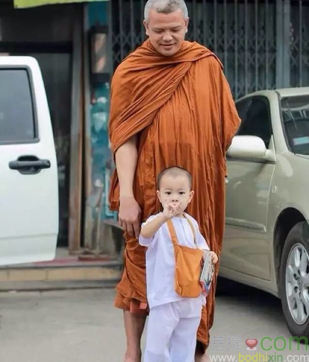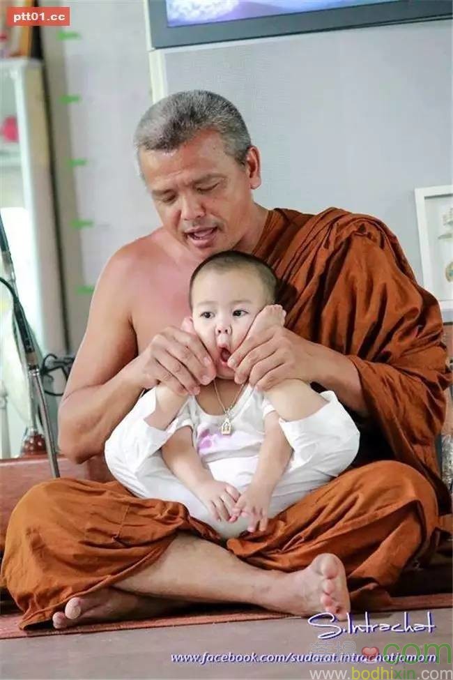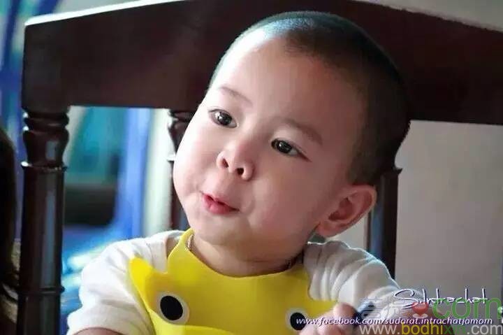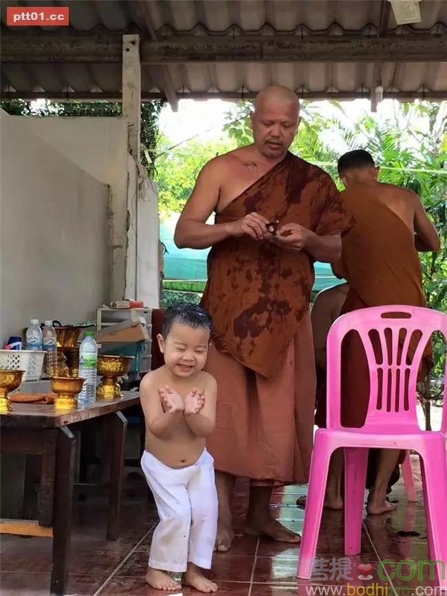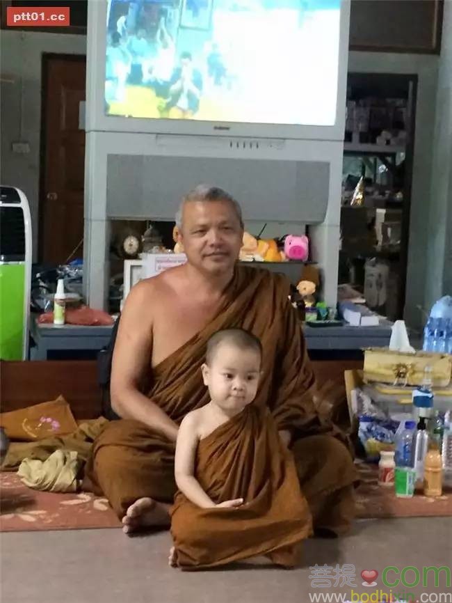 這個呆萌的小baby名字叫 Nongkorn ,今年才剛剛2歲半,但已經是泰國暖武里府寺廟裡非常有名的小沙彌了。他從3個月大的時候就開始接觸佛法,到了上幼兒園的年紀,就被父母送來當了小和尚,每天跟著寺裡的師傅們打坐、念經、化緣。