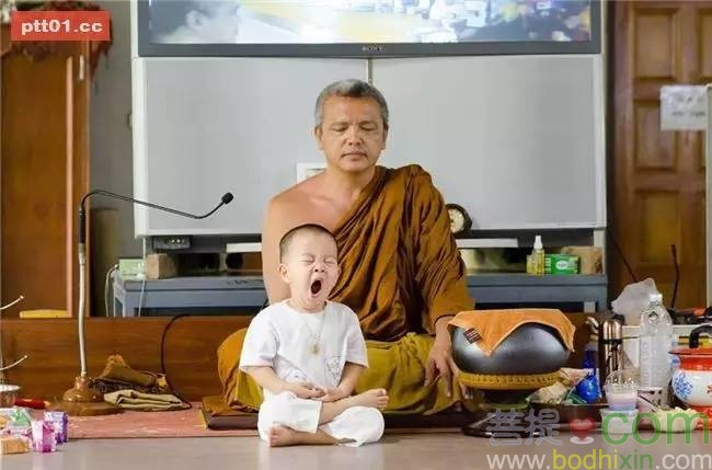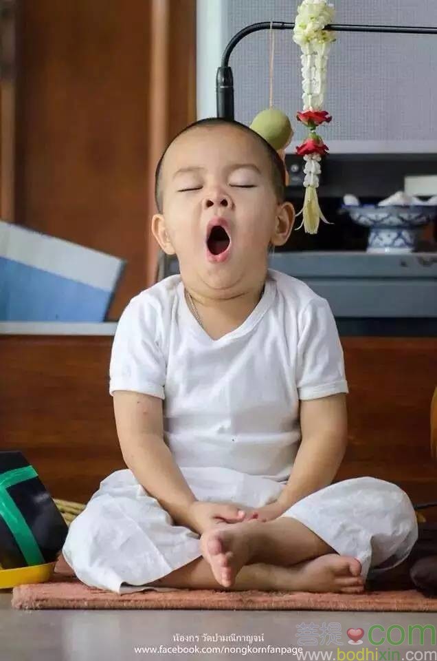 因為Nongkorn 每天一早就被父母送到寺廟裡來,所以難免犯困,經常一邊打坐一邊打哈欠,坐著坐著就能睡著。