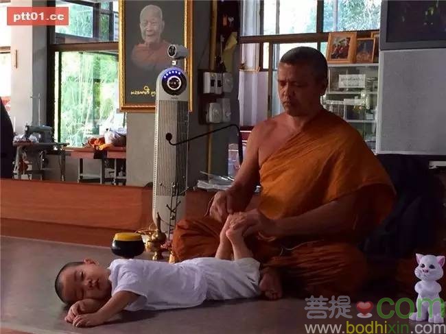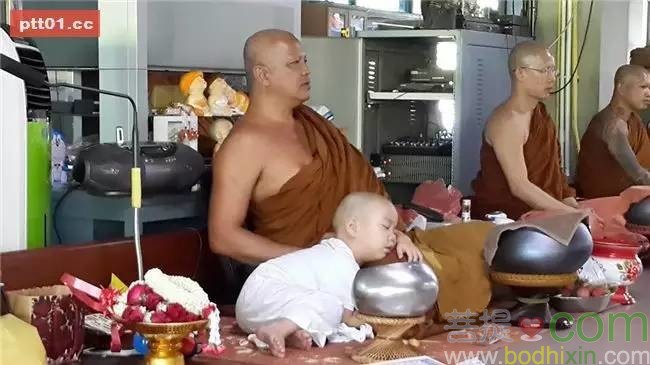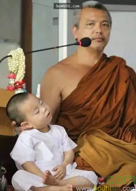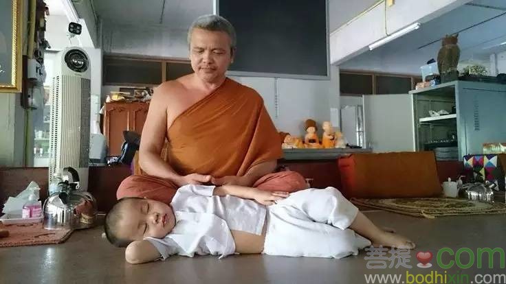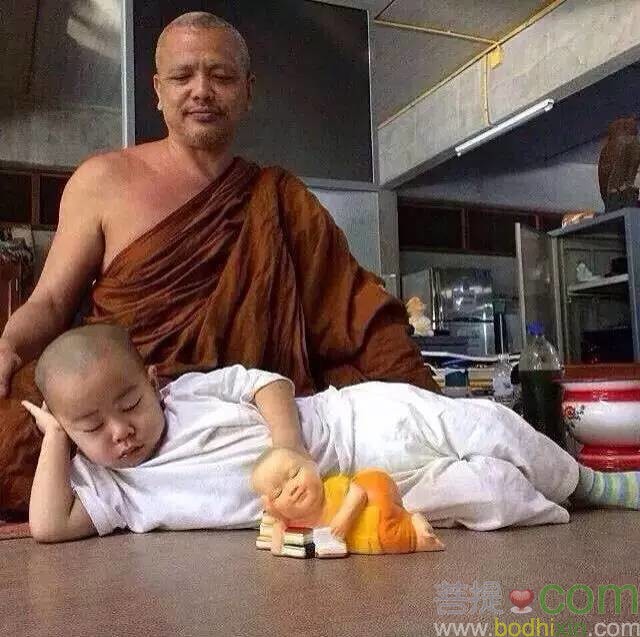 對於有個愛睡覺的小徒弟,Nongkorn 的師父也感覺既幸福又無奈,從他眼神裡就能看出滿滿的愛意來。而且,師父有時候怕Nongkorn 睡著了會摔著自己,所以經常一邊講經文,一邊用手托著Nongkorn 的小腦袋。甚至直接就讓Nongkorn 躺下睡覺,連經文也不講了。