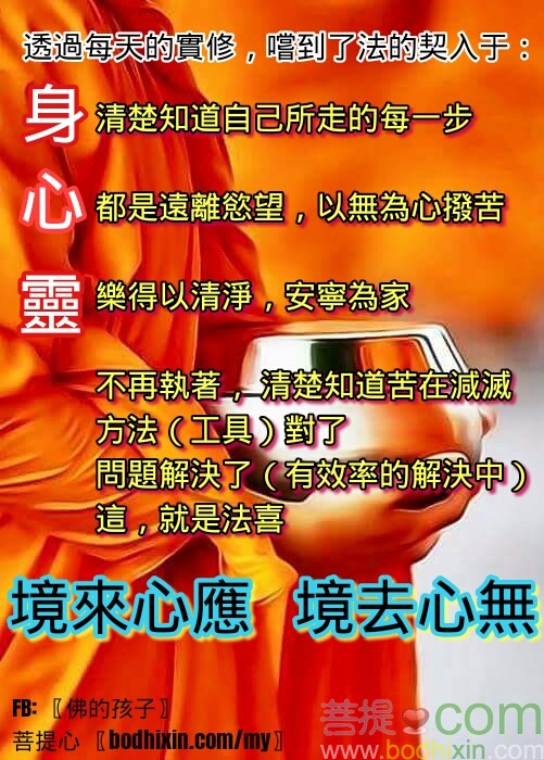 3 法喜是從清淨心裡面生的,不是外面五欲六塵的刺激。