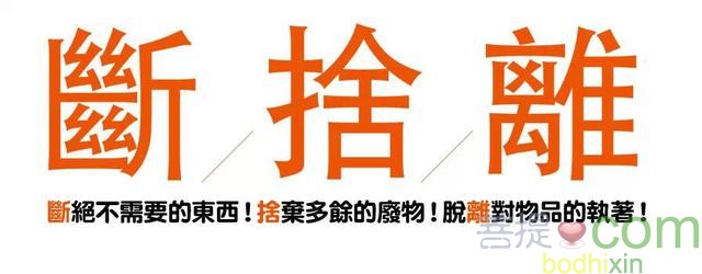 「離」=舍棄對物質的迷戀,遠離物質的誘惑,放棄對物品的執著,讓自己處於寬敞舒適,自由自在的空間。
