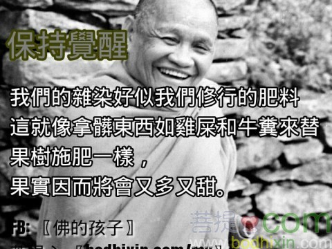 保持覺醒 By BodhiXin.com19 10 月, 2015佛法文章, 南傳原始佛法, 修行, 覺醒, 阿姜查 阿姜查說禪 ─ 保持覺醒 我們的雜染好似我們修行的肥料。這就像拿髒東西如雞屎和牛糞來替果樹施肥一樣,果實因而將 Read More
